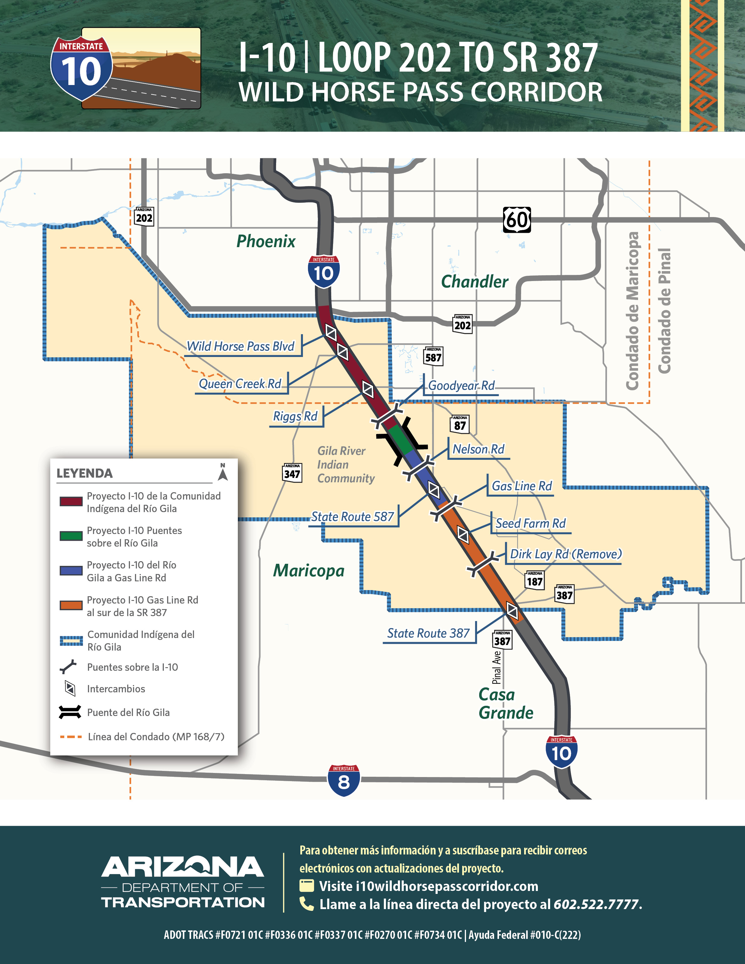 The following resources, including maps and fact sheets, provide detailed information about the planned improvements along the I-10 Wild Horse Pass Corridor. Use these resources to get a better understanding of project elements and stay informed as work progresses.